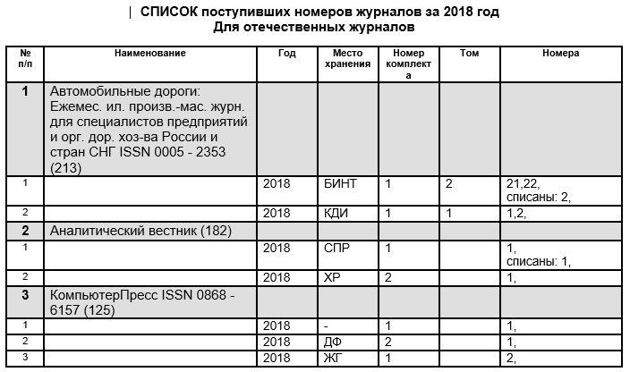 Формирование происходит по реальным записям номеров в БД каталога, не по полю 909. Данные в таблице располагаются в пределах одного журнала по местам хранения – т.е. номера кумулируются по местам хранения.
